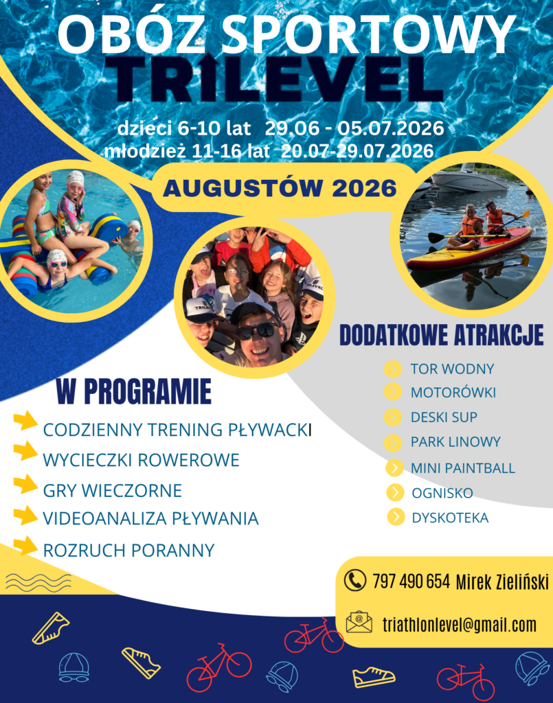 - Możliwość rozwijania umiejętności pływackich i rowerowych.